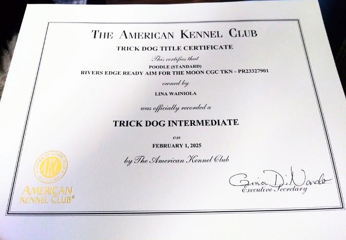 Luna had to learn and perform a number of tricks to earn an AKC Trick dog title.