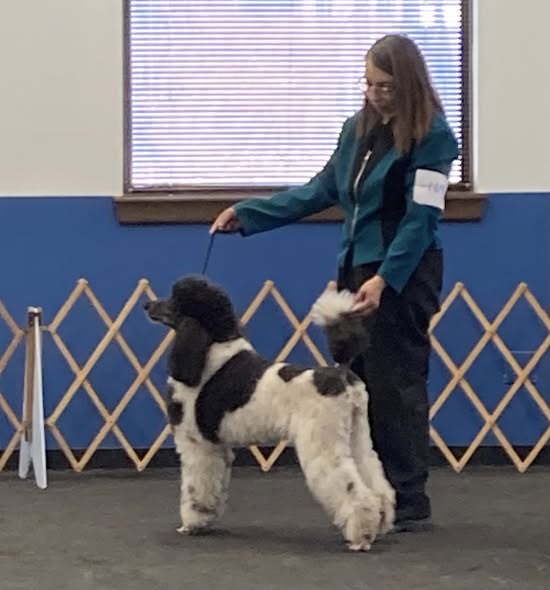 Our little cream & white parti girl earned multiple Best Female and Best Of Breed for Multicolored Standard Poodles.